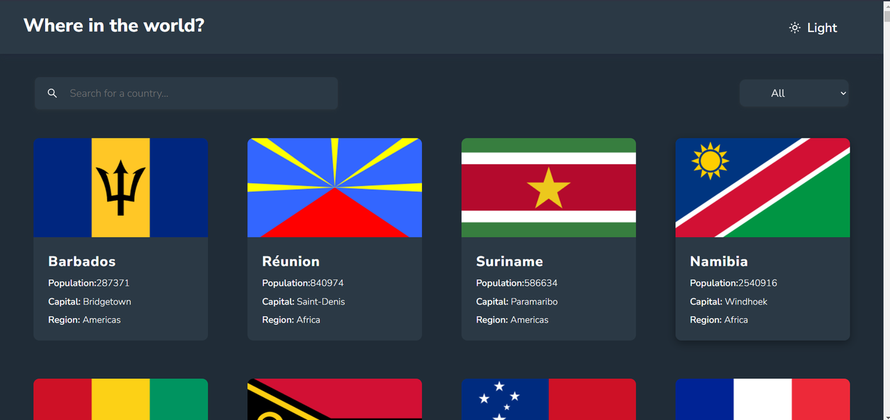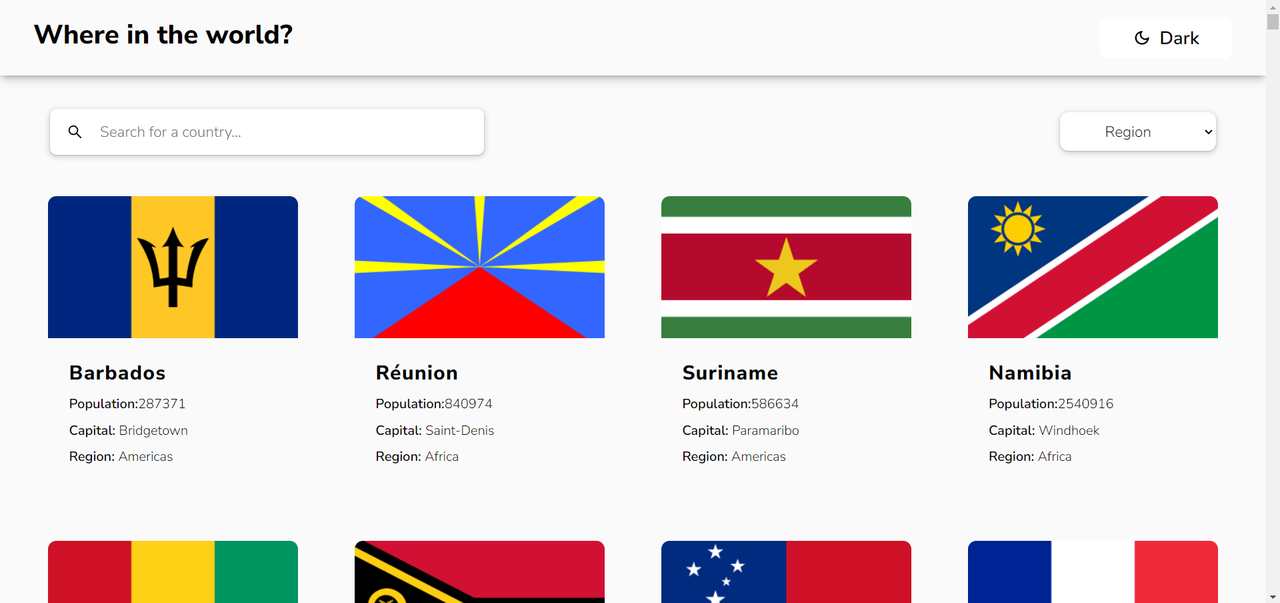 The REST Countries API with React is a web application that allows users to search for and view information about countries around the world.