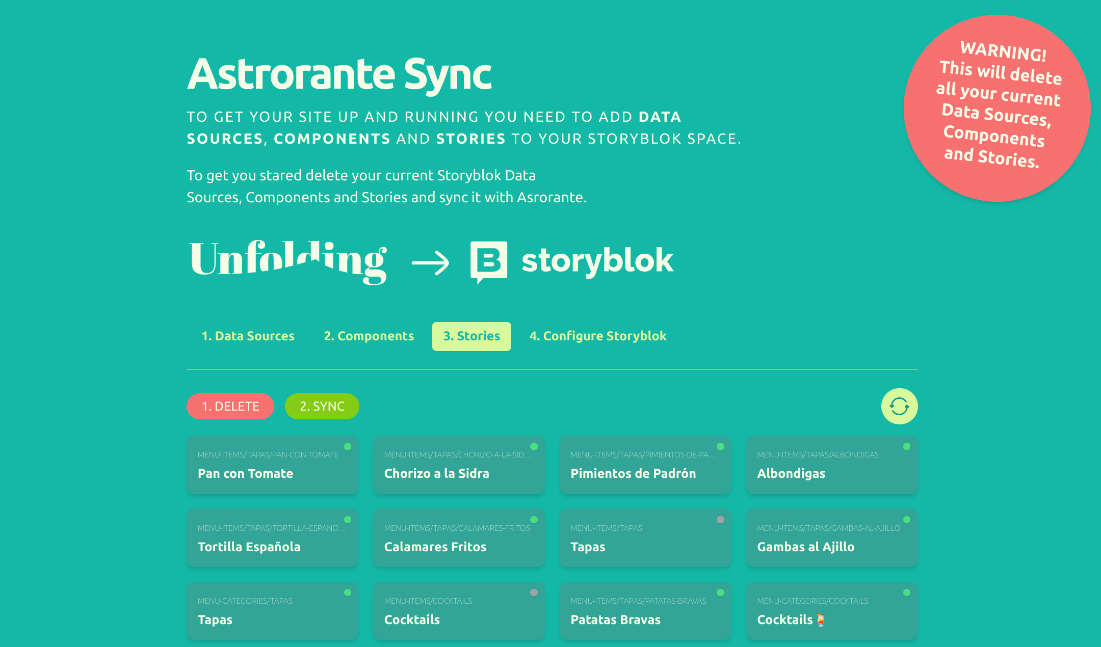 And sync your Datasources, Components, and stories. it is best to first delete before syncing. if a sync or delete fails, try to refresh the page ant try again.