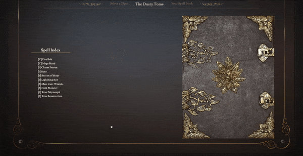 - One click navigation from the spell index in the Spell Book view