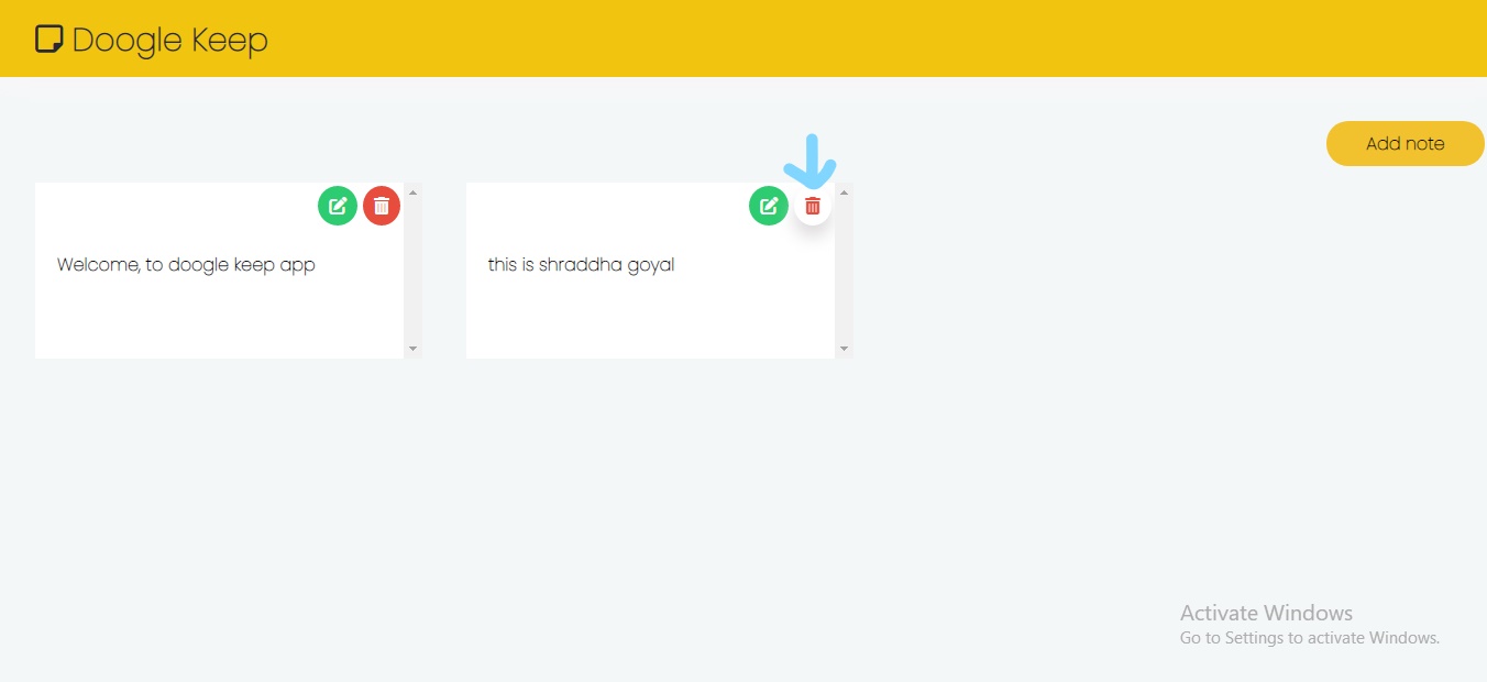 1)Adding the note with the help of ADD NOTE BUTTON.