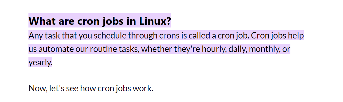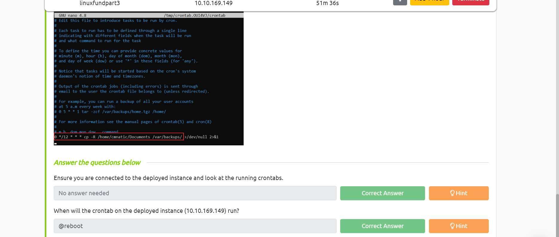 cron jobs có tác dụng giúp bạn làm những công việc định kì, tự động hóa trên linux What number base could you use as a shorthand for base 2 (binary)? hệ cơ số hexa 2^4 nên chúng ta có thể nhóm 4 bit của hệ 2 thành 1 số trong hệ cơ số hexa If a password hash starts with $6$, what format is it (Unix variant)?