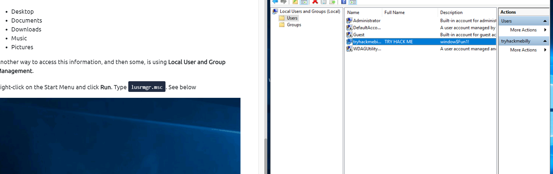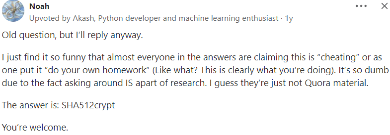 các password được mã hóa ở dạng LM hash hoặc NTLM hash nhưng LM hash có tính bảo mật yếu hơn nên thường sẽ dùng NTLM hash. LAN Manager authentication uses a particularly weak method of hashing a user's password known as the LM hash algorithm, stemming from the mid 1980s when viruses transmitted by floppy disks were the major concern.[6] Although it is based on DES, a well-studied block cipher, the LM hash has several weaknesses in its design.[7] This makes such hashes crackable in a matter of seconds using rainbow tables, or in a few minutes using brute force. Starting with Windows NT, it was replaced by NTLM, which is still vulnerable to rainbow tables, and brute force attacks unless long, unpredictable passwords are used, see password cracking. vậy câu trả lời sẽ là NTLM What are automated tasks called in Linux?