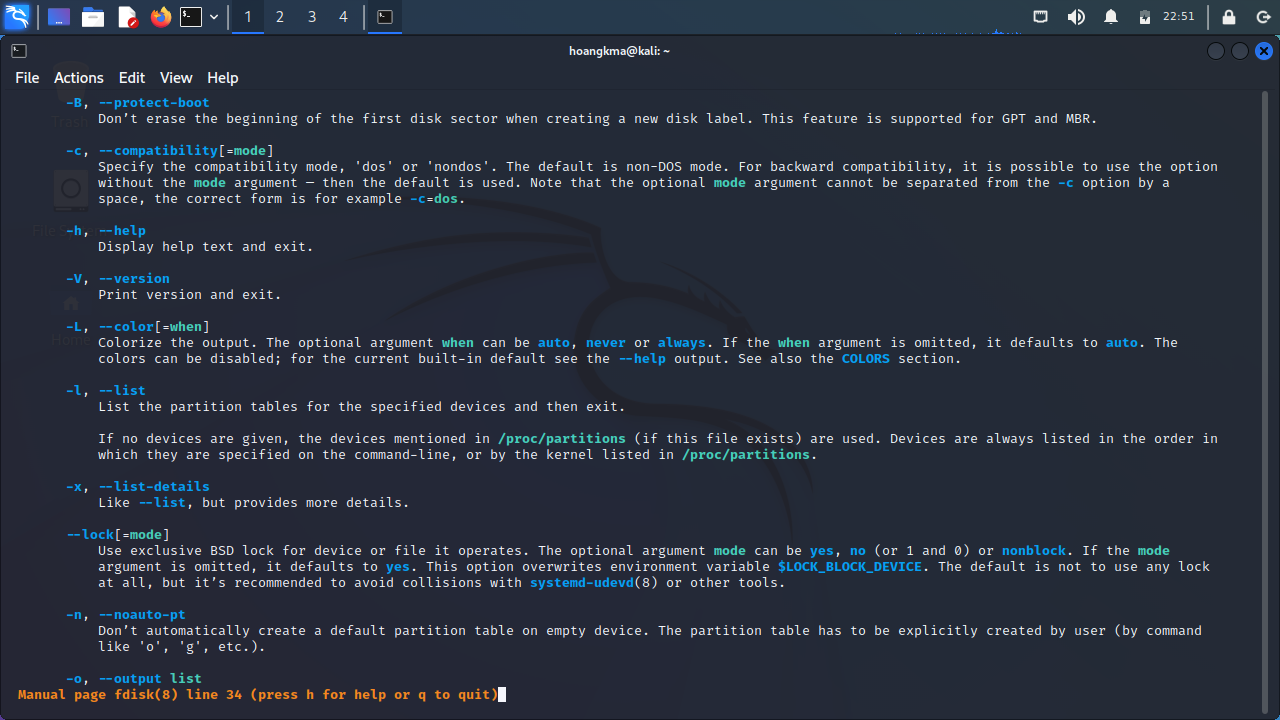 fdisk is a command used to view and alter the partitioning scheme used on your hard drive. What switch would you use to list the current partitions?: sử dụng pipe(đường ống) kết hợp cùng grep(tìm 1 chuỗi) để có kết quả