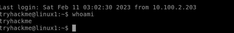 sử dụng câu lệnh whoami để kiểm tra user mình đang sử dụng