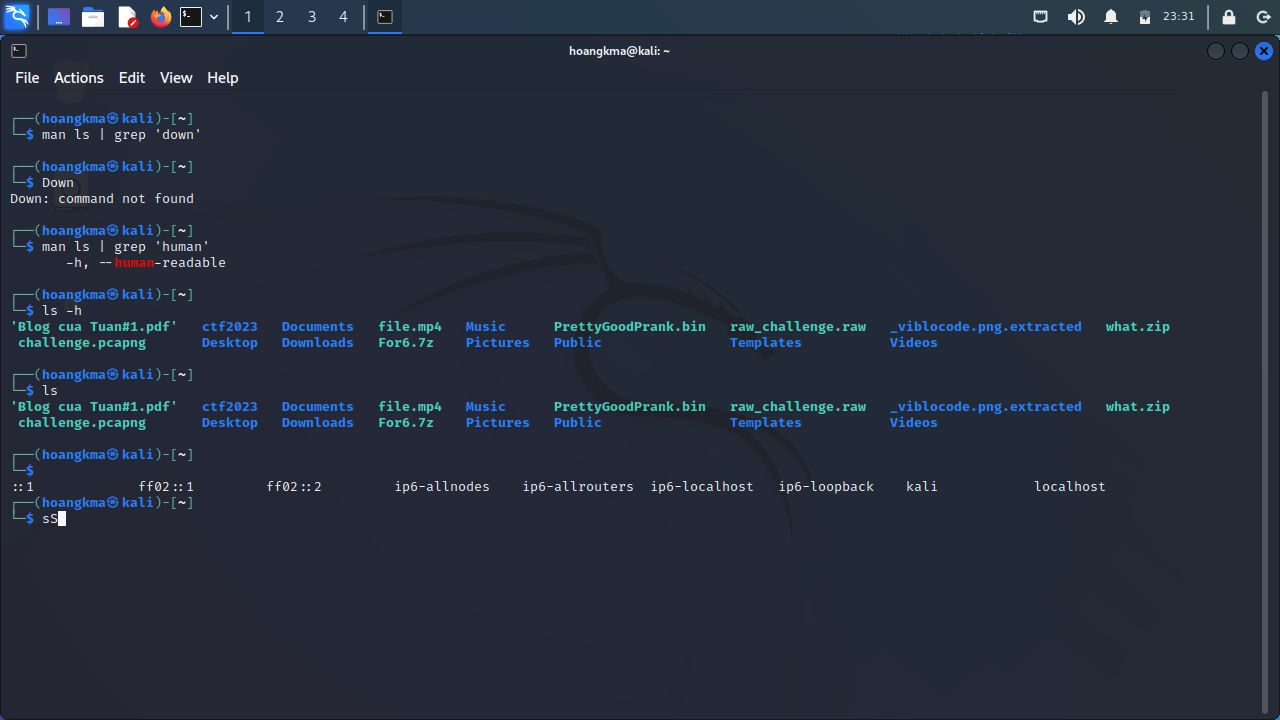 Interacting With the Filesystem! ls: liệt kê các file và folder(không bao gồm các file ẩn) cat: đọc một file hoặc có thể ghép nội dung các file lại với nhau, ghi đè hoặc tạo một file mới pwd: kiểm tra thư mục mà mình đang đứng