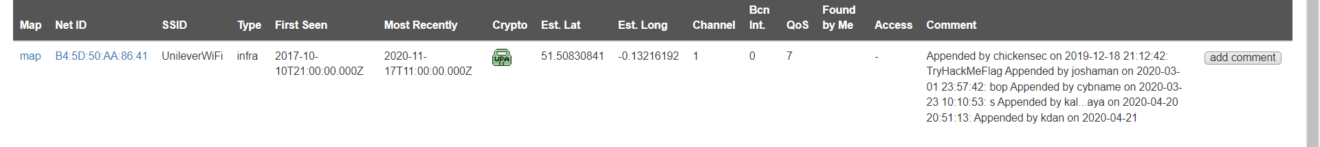 Whats the SSID of the WAP he connected to?