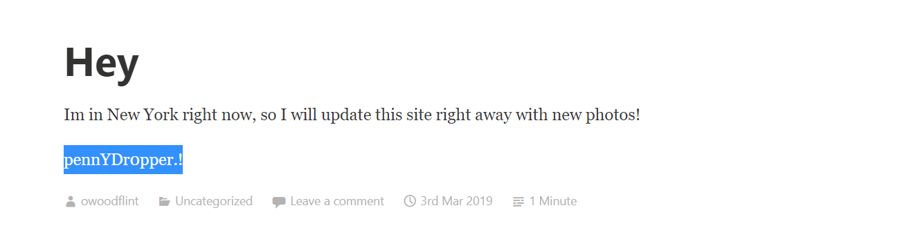 -> New York What is this persons password? do wordpress là trang của người dùng phải tự giấu thông tin nên nó khả nghi nhất trong khi twtitter và github bảo mật về mật khẩu khá tốt em check từng phần trong web thì phần dưới có để màu trắng