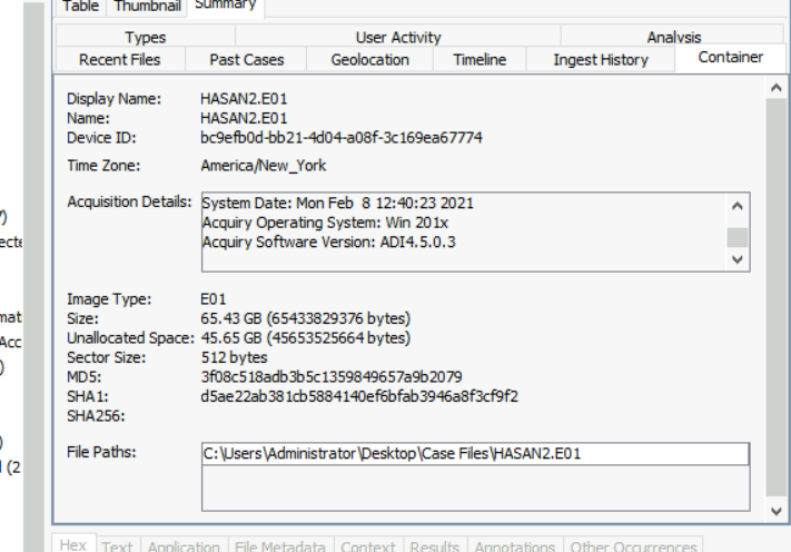 What is the MD5 hash of the E01 image?
