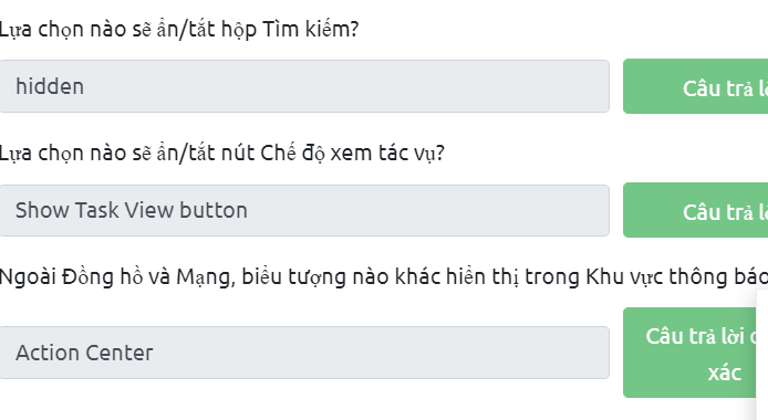 phần này chỉ việc đọc hướng dẫn dùng và trả lời