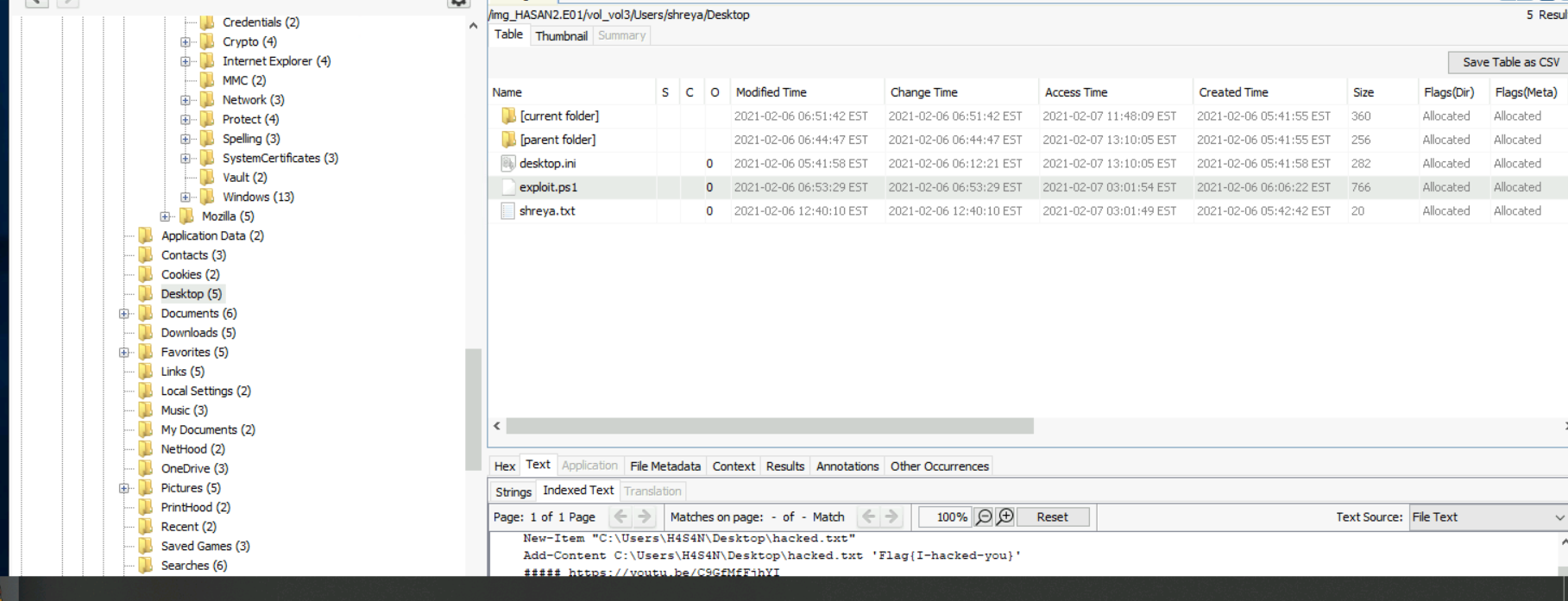 A user had a file on her desktop. It had a flag but she changed the flag using PowerShell. What was the first flag