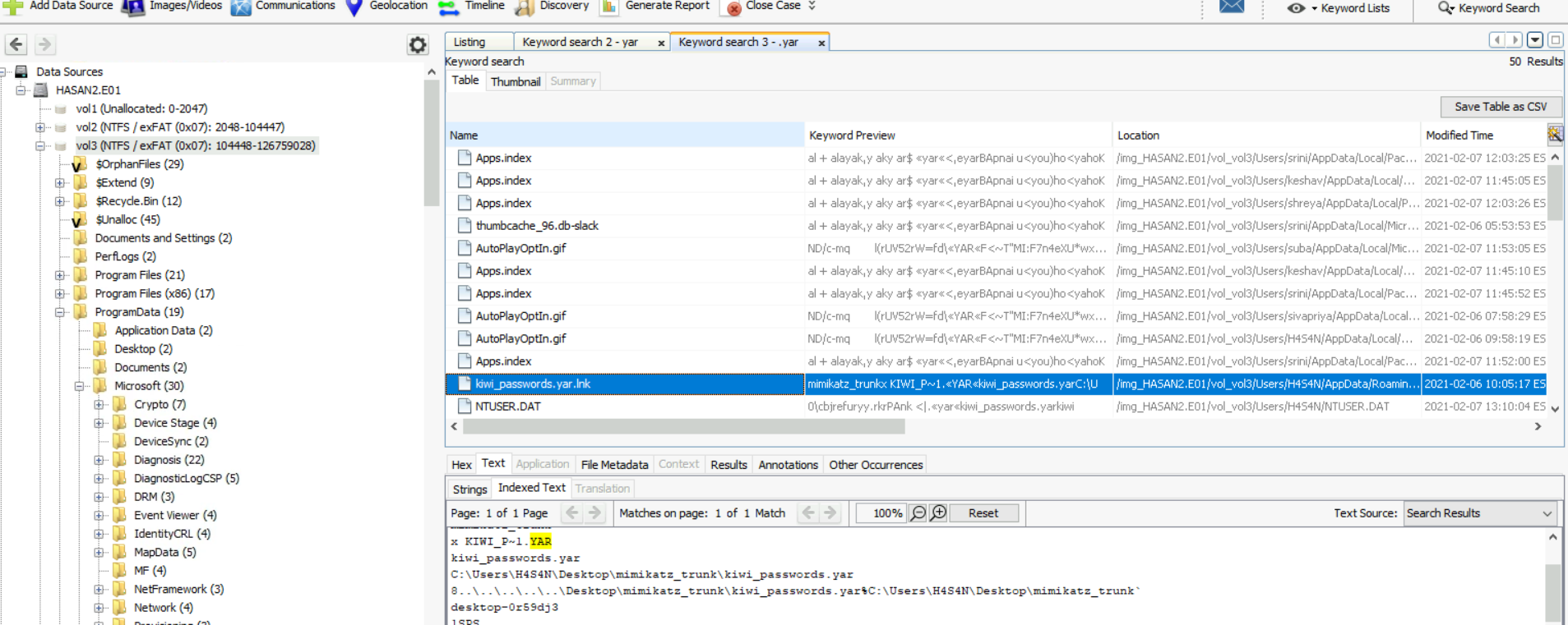dùng tính năng search file name của autospy