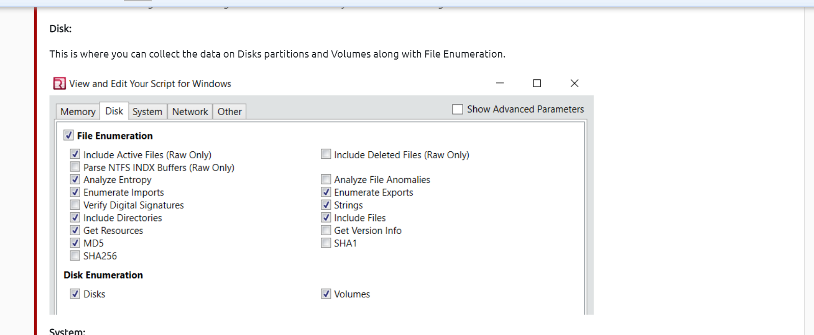 If you want to collect the data on Disks and Volumes, under which option can you find it?