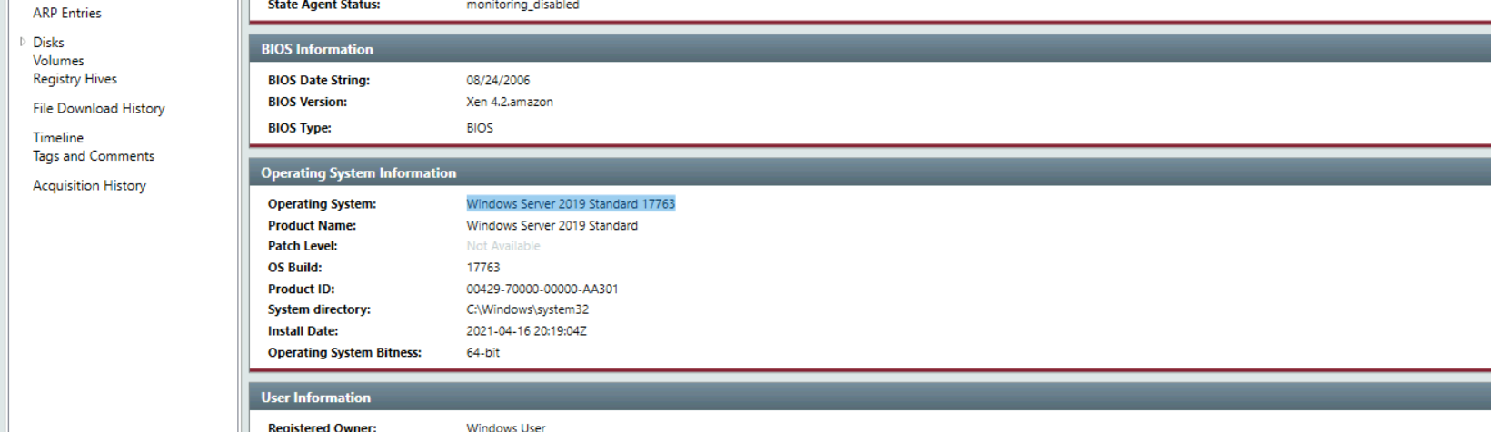 Provide the Operating System detected for the workstation.