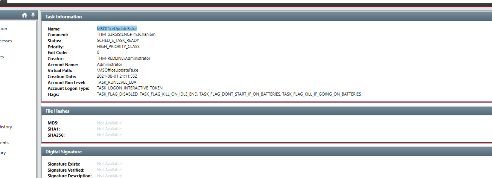 What is the suspicious scheduled task that got created on the victim's computer?