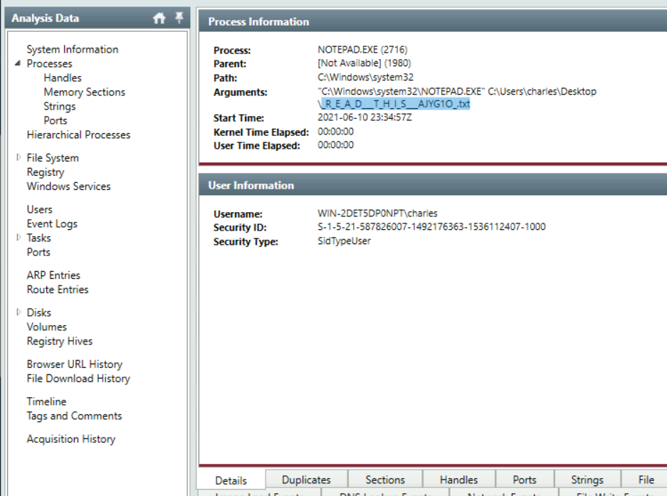 Can you find the name of the note left on the Desktop for the "Charles"?