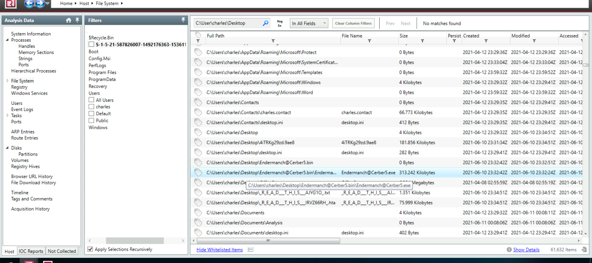 Provide the path of the file that matched all the artifacts along with the filename.