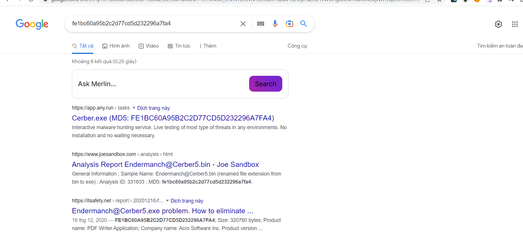 - có md5 của mã độc lên virus total hoặc hybrid analyse check hoặc theo gợi ý dùng câu lệnh get file-hash trong cmd