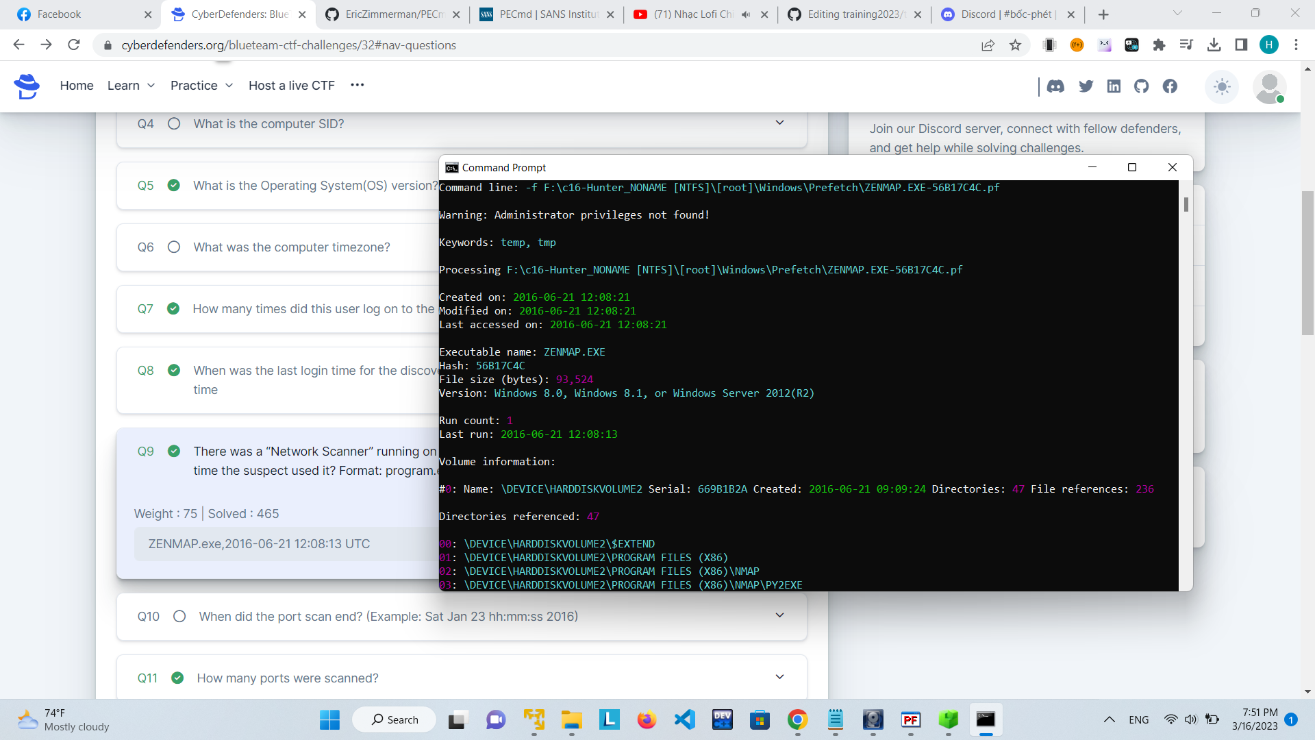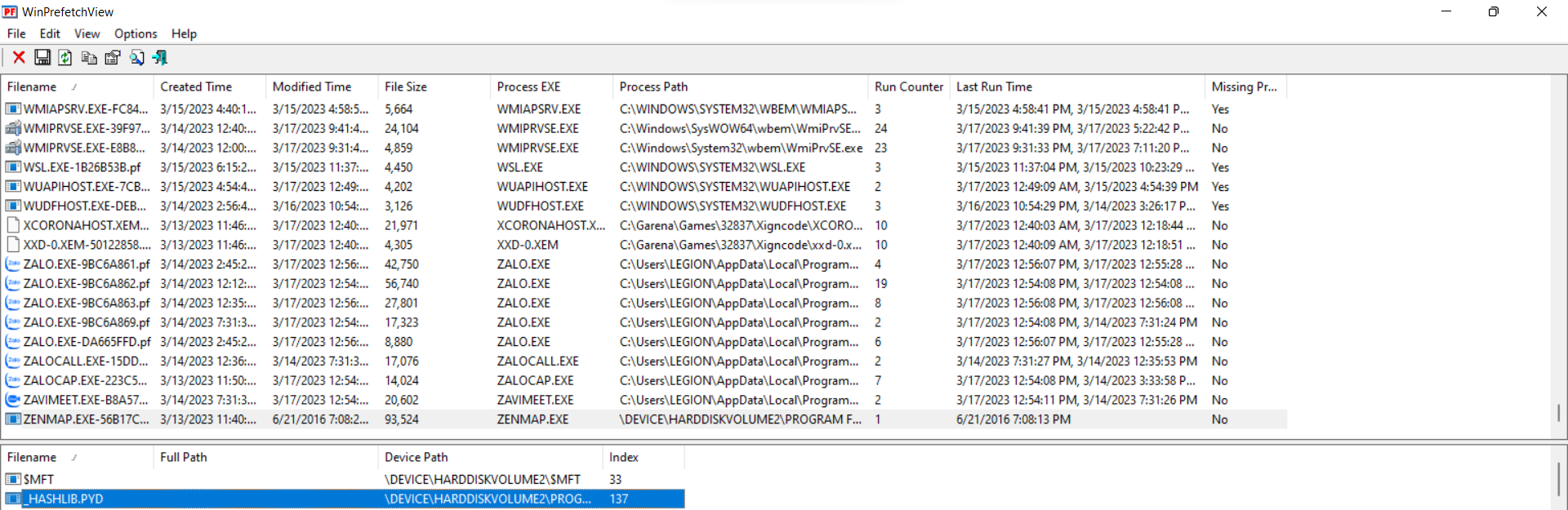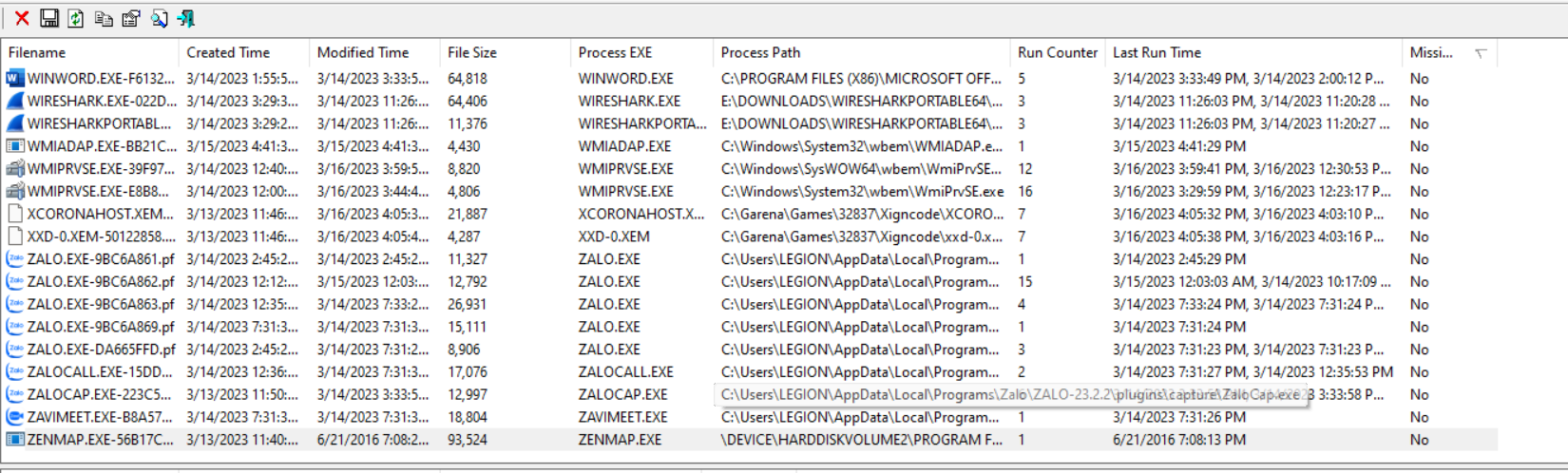 đọc file lưu lại lịch sử của tool lấy từ root/Windows/Prefetch/ZENMAP.EXE-56B17C4C.pf