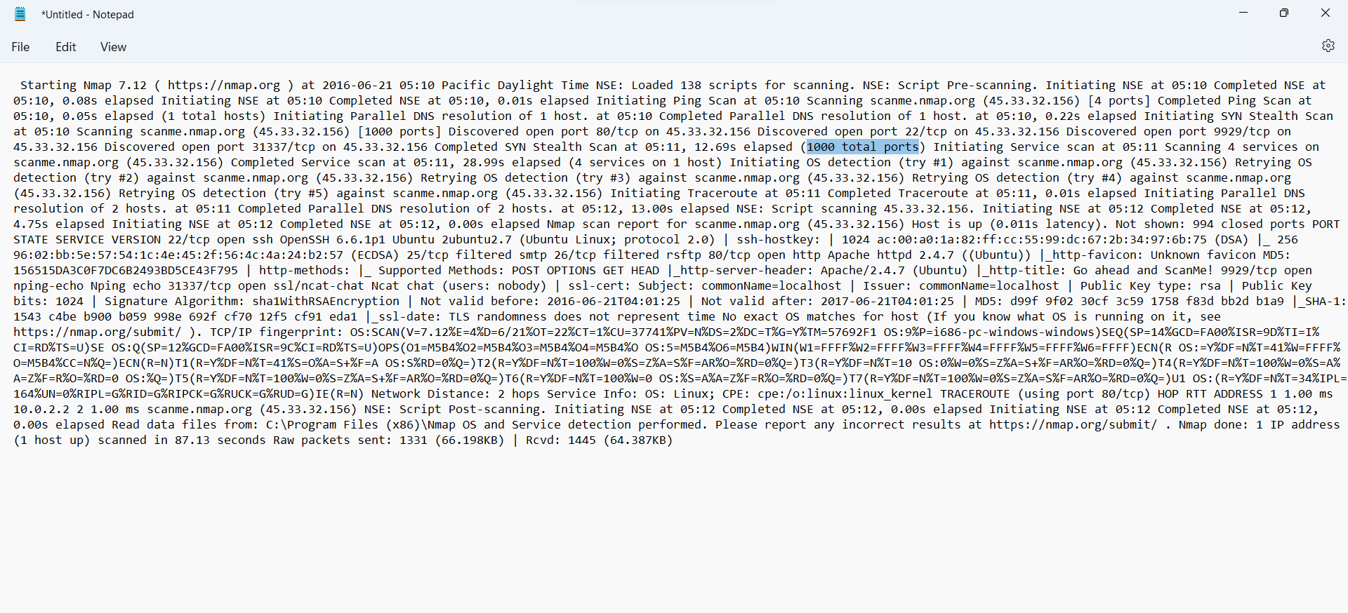 thấy có tổng 1000 port được quét