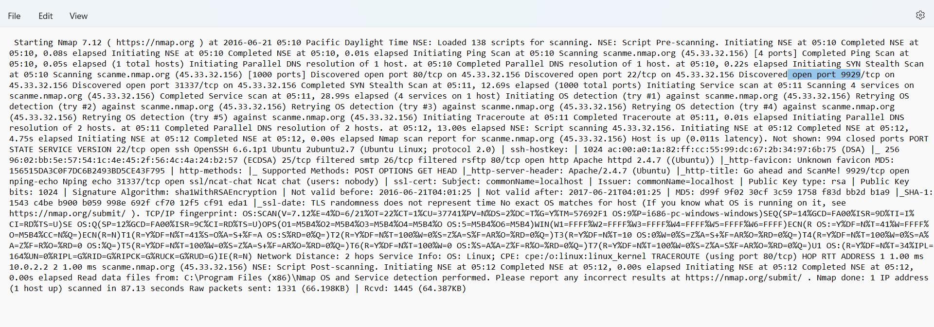 What ports were found "open"?(comma-separated, ascending)