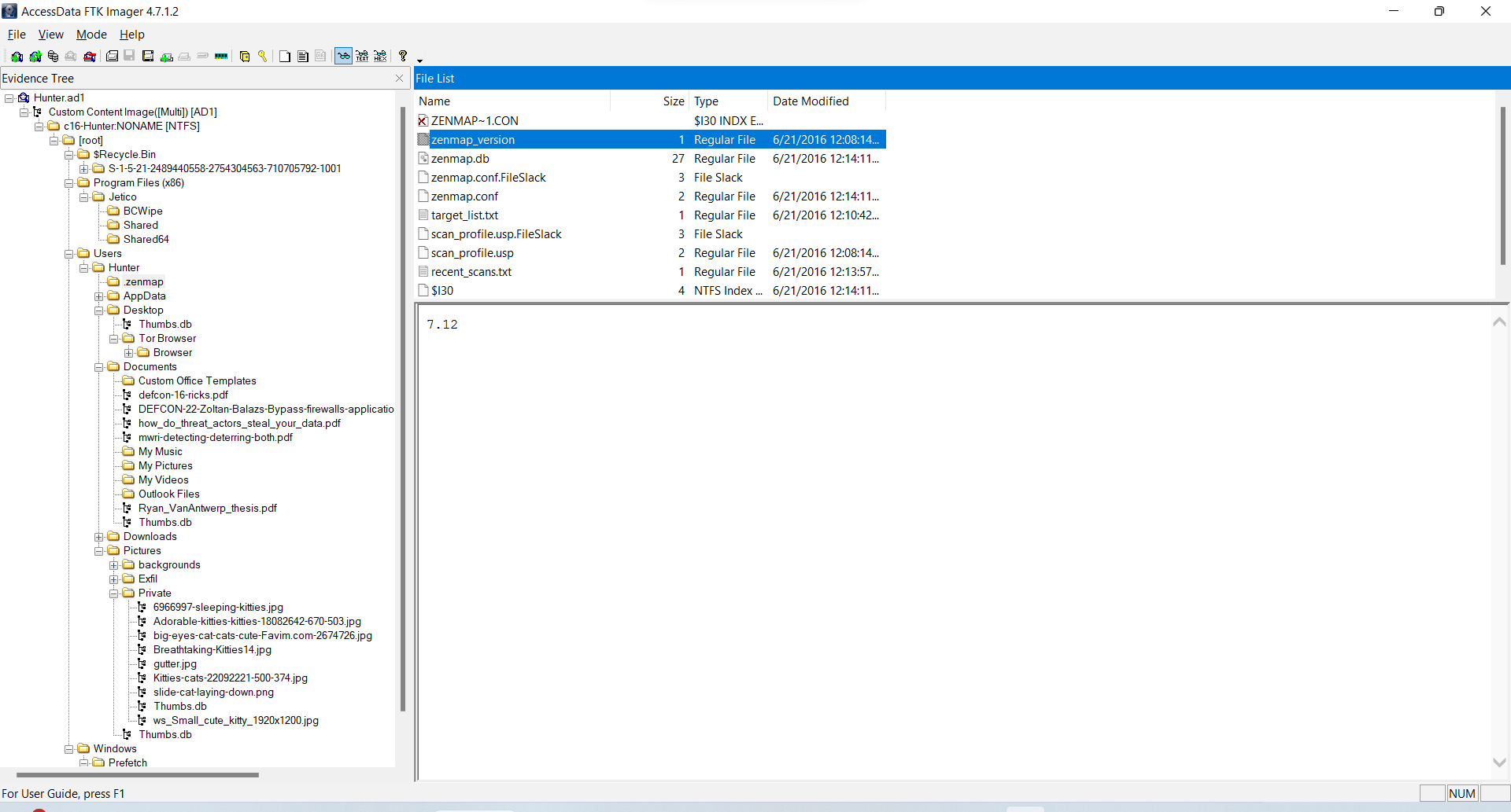 dùng ftk mở và lấy được ver của zenmap: 7.12