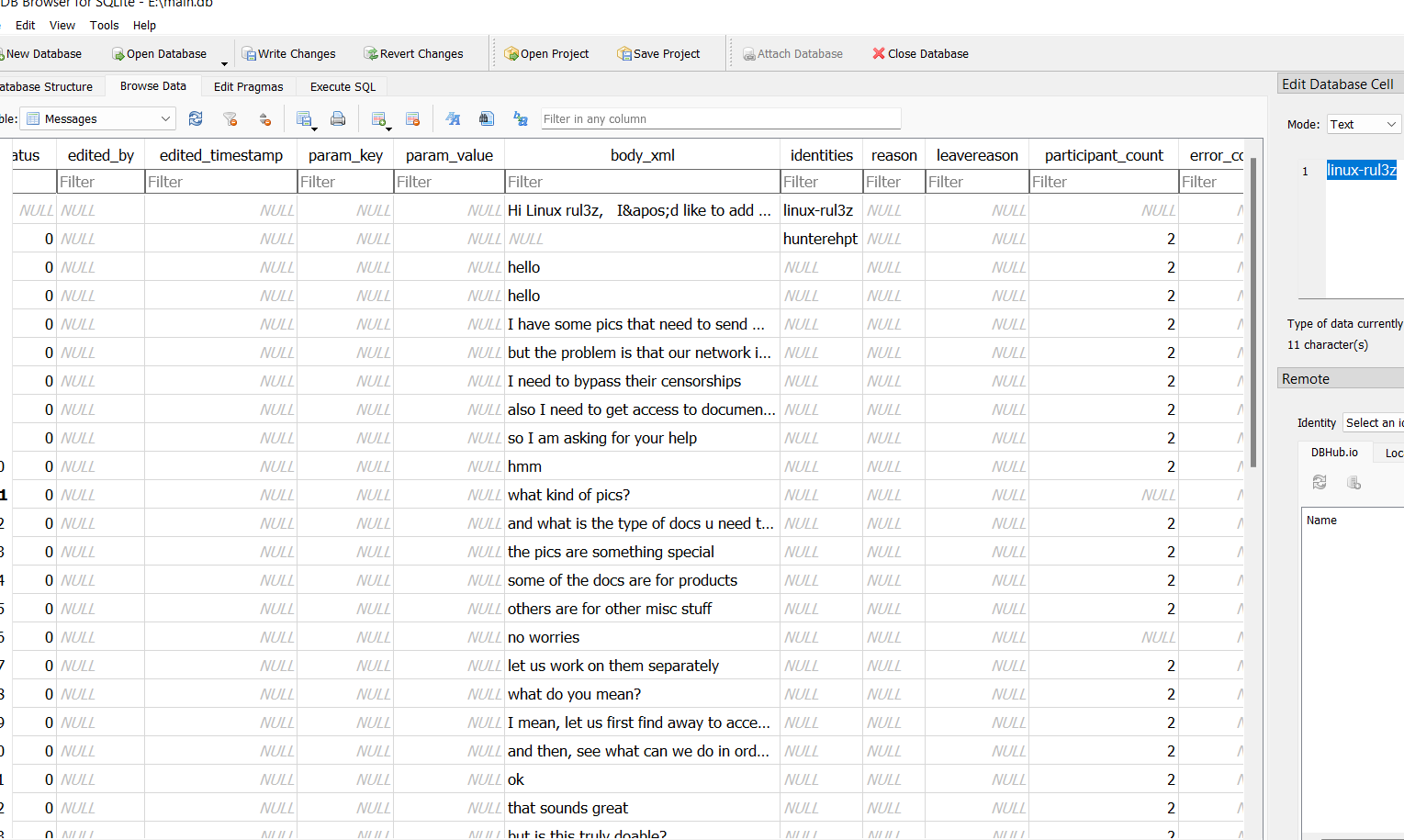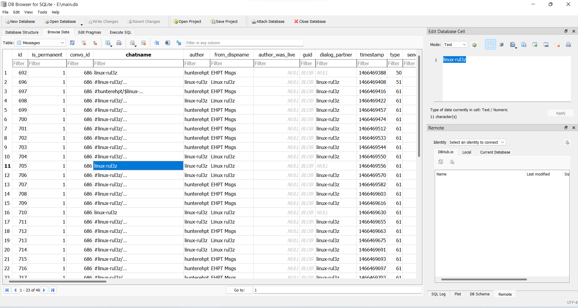 thấy user: hunter có trò chuyện với một người tên là linux-rul3z