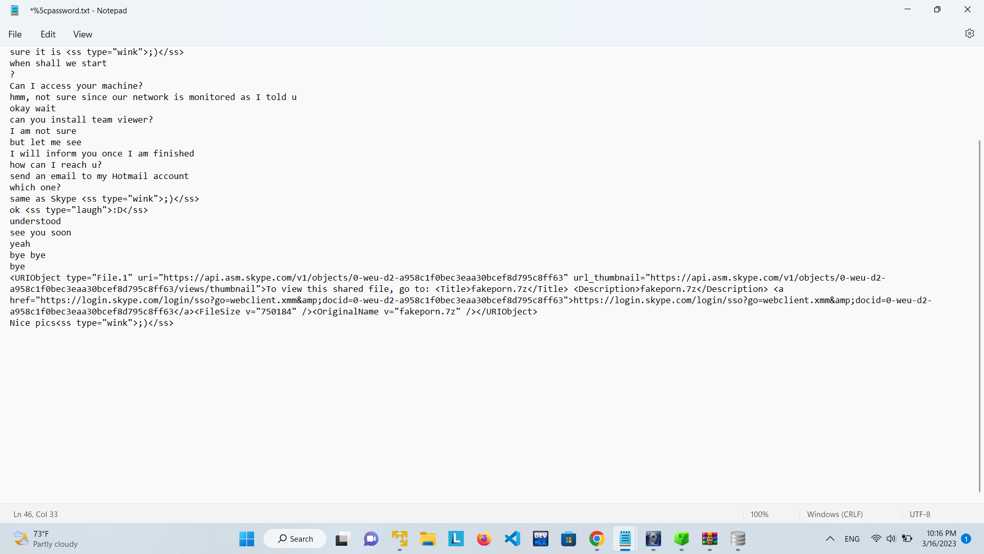 The employee engaged in a Skype conversation with someone. What is the skype username of the other party?