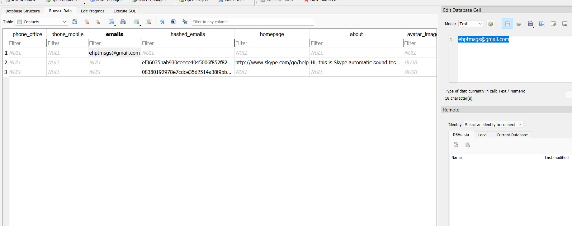 đầu tiên cần lấy file database của skype về để phân tích Root/Users/Hunter/AppData/Roaming/Skype/hunterehpt/main.db ném lên sqlite db chọn db browser để xem từng table