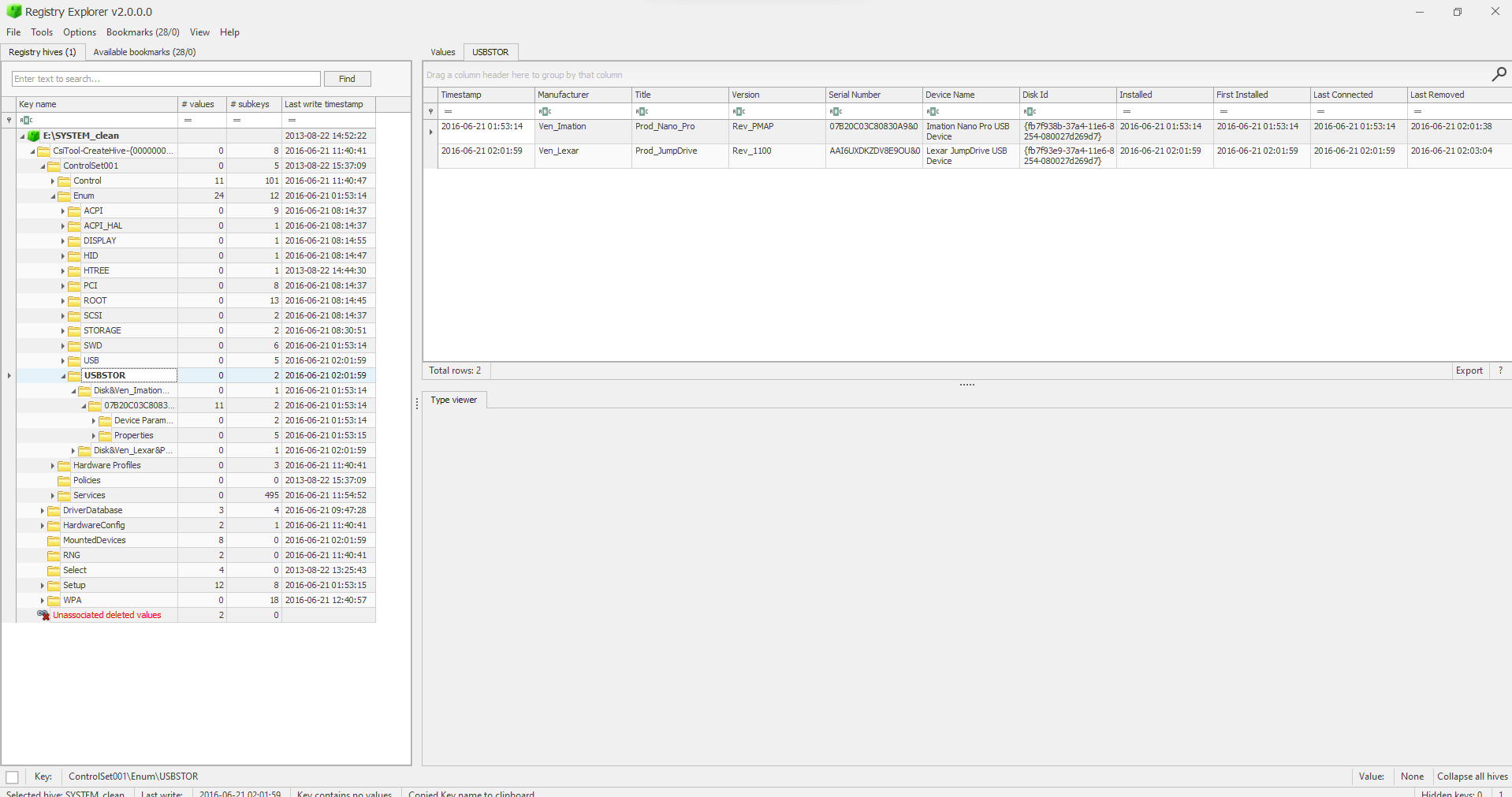 What are the serial numbers of the two identified USB storage? câu này là một câu liên quan đến registry tham khảo tại