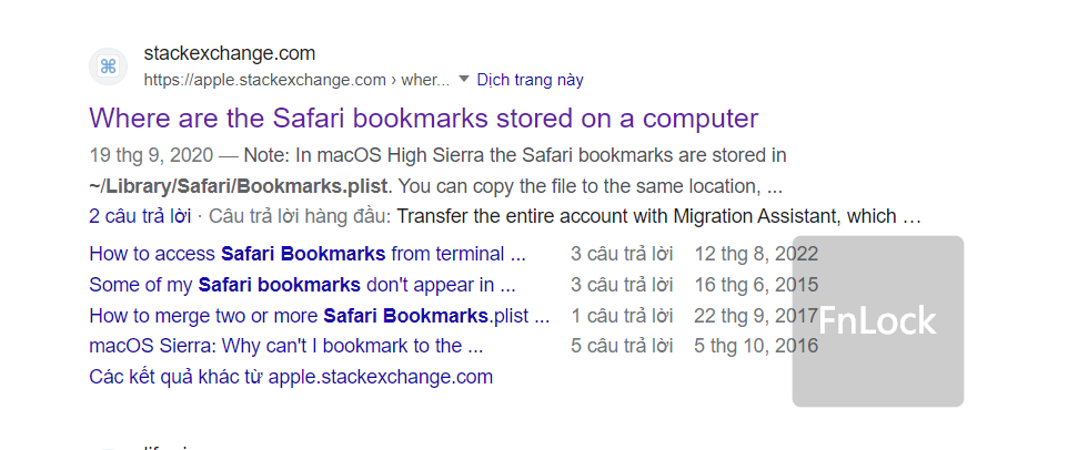 search google: Safari Bookmarks location lấy đường dẫn vào file để lấy kết quả!
