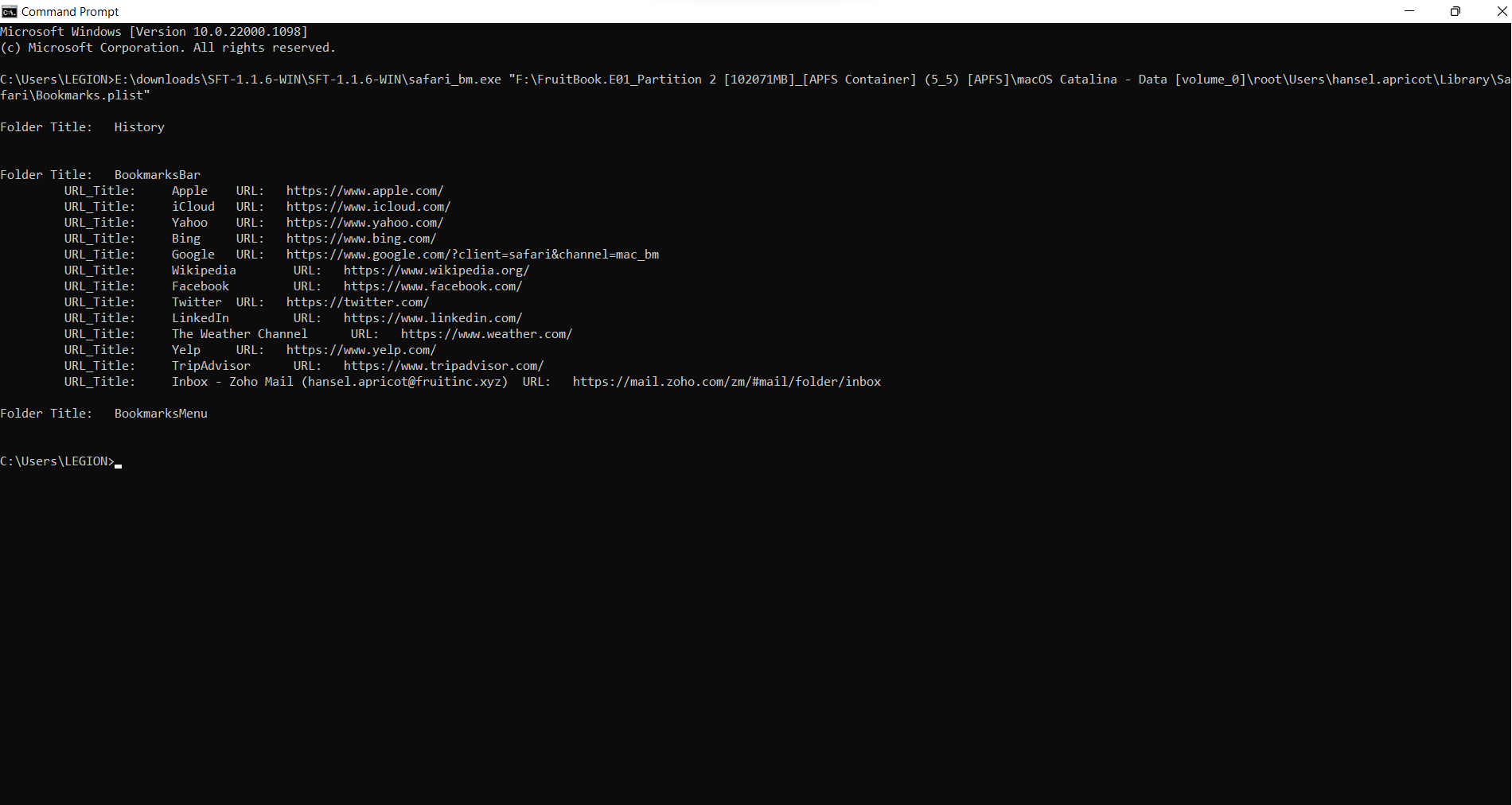 thực hiện mount ổ và dùng tool safari_bm để phân tích file ->13