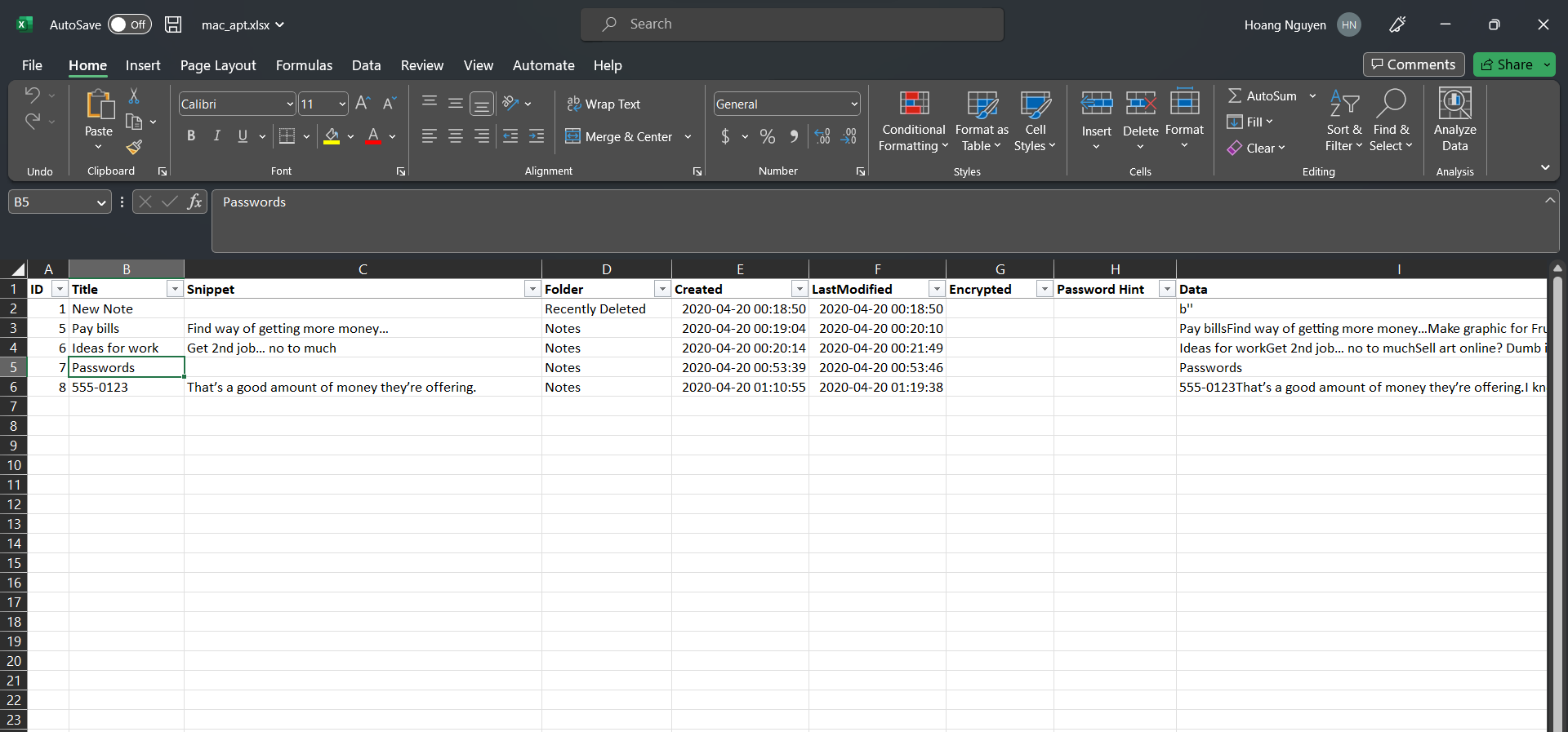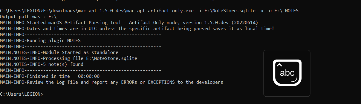 search google: macos notes location tool mình sử dụng trong (bài này)[https://github.com/ydkhatri/mac_apt/wiki/Artifact-Only-Mode] xuất file về dạng csv cho dễ đọc