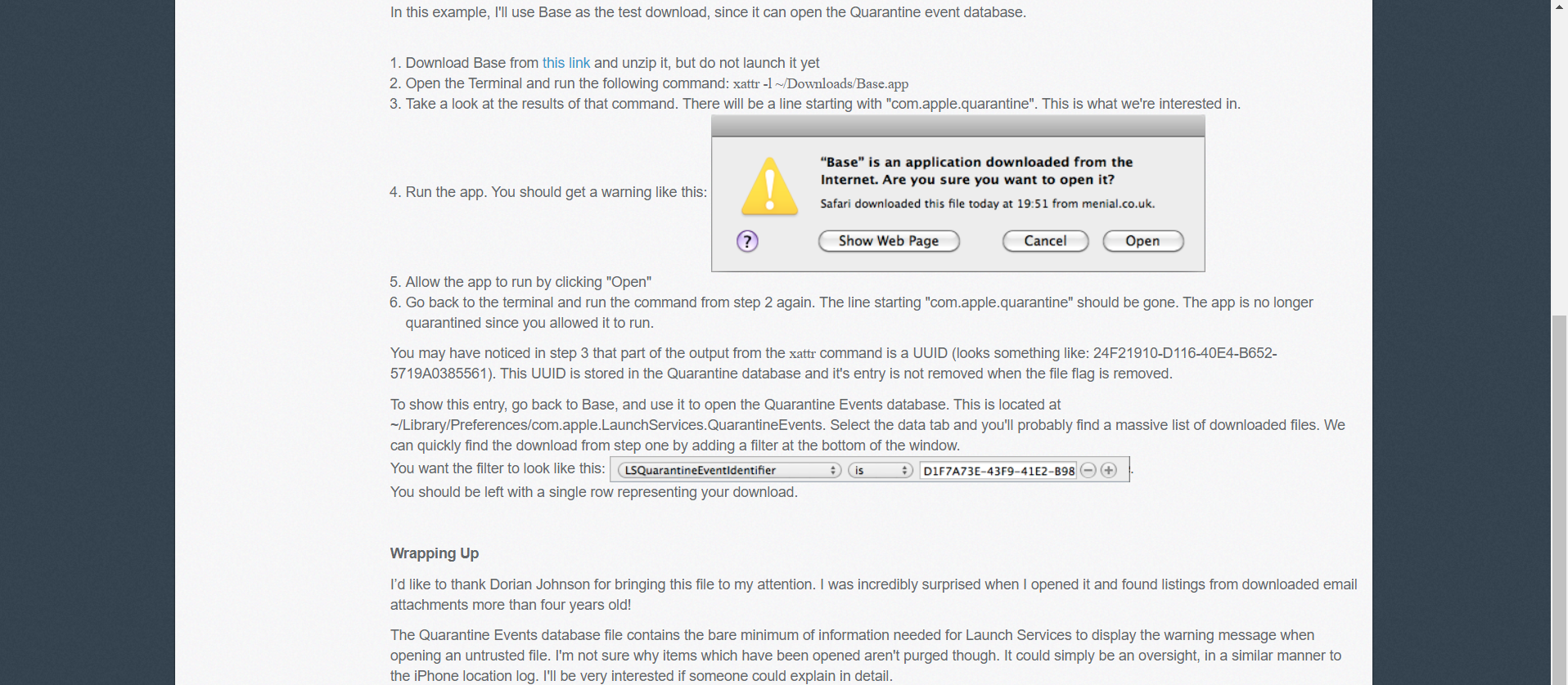 search: macOS quarantine database