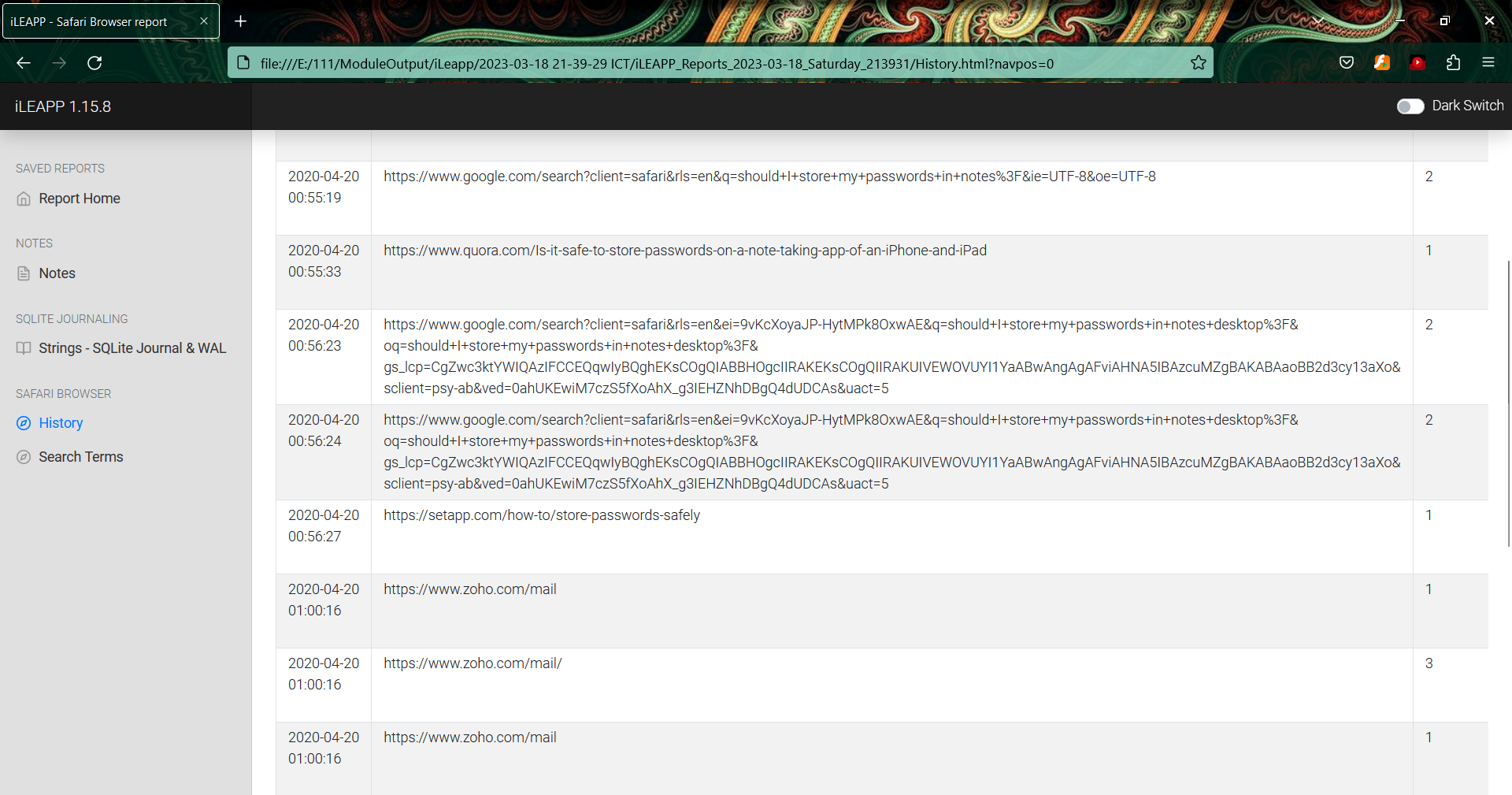 sử dụng autopsy có tự xuất ra 1 file phân tích lại disk vào đấy sẽ lấy được thời gian truy cập web của người dùng