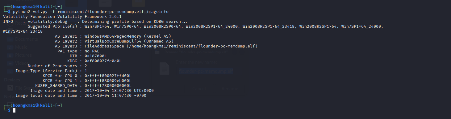 đầu tiên dùng vol lấy image info của mem để thực hiện các phân tích sau