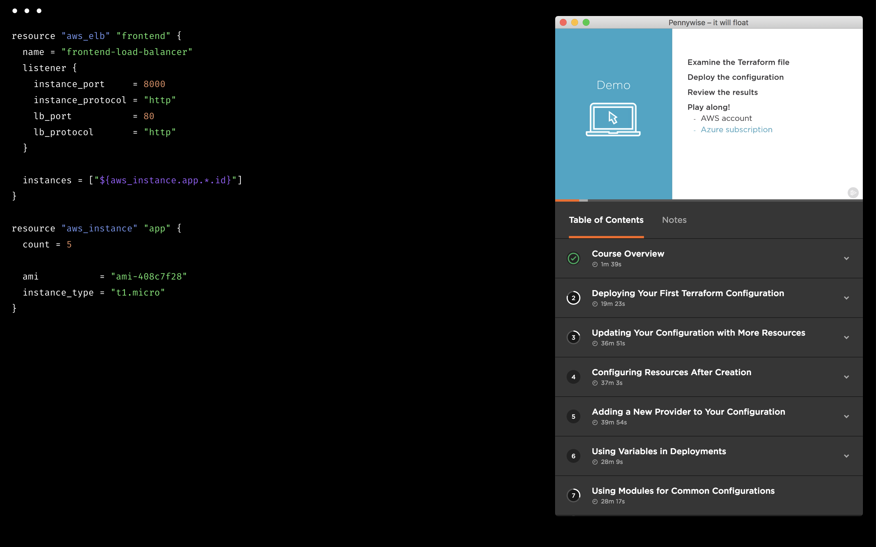 - Making a video course? Open the demo in Pennywise and show the output in real time