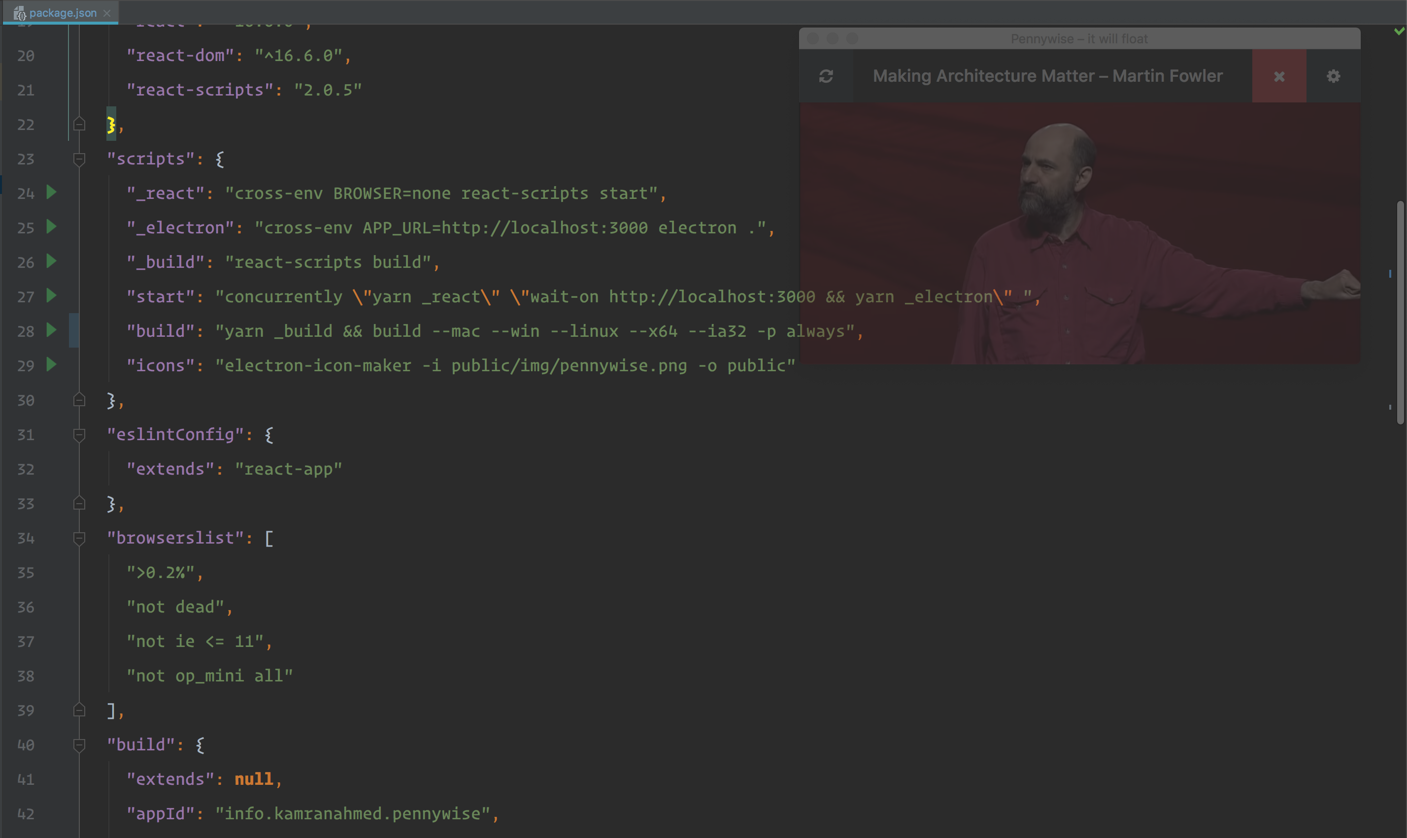 - Watching tutorial while you code? Open the video in Pennywise and keep it in front of you