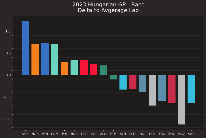 View lap time difference for each driver to the overall session average time.