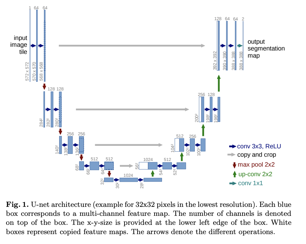 U-Net is a gets it's name from the U shape in the model diagram. It processes a given image by progressively lowering (halving) the feature map resolution and then increasing the resolution. There are pass-through connection at each resolution.