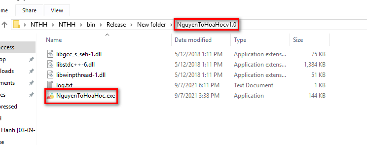 2.Vào thư mục NguyenToHoaHocv1.0 vừa giải nén và chạy file NguyenToHoaHocv1.0.exe