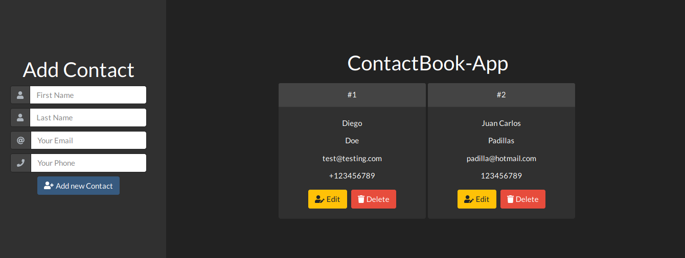Note: This version is a refactor of ContactBook-App v.1.0 separating frontend and backend.