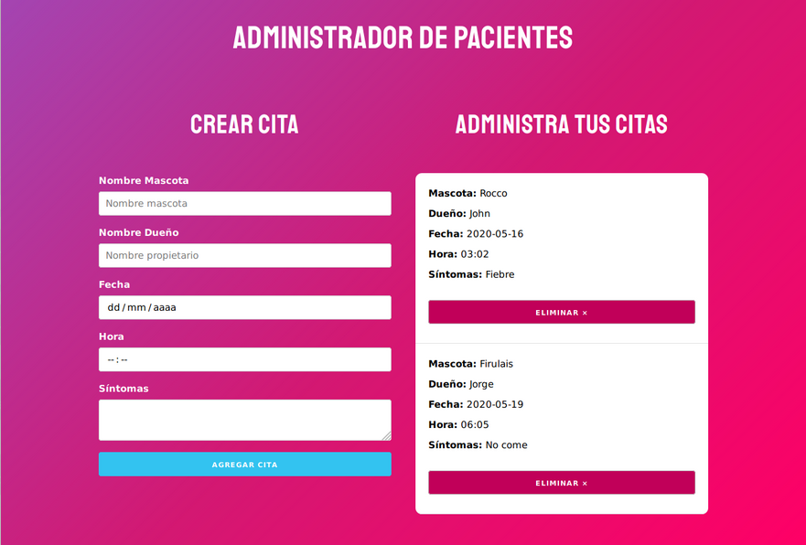 Demo: https://administrador-citas-reactjs.netlify.app/