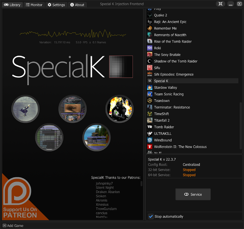 The modern frontend used for managing Special K and its global injection service as well as quickly and easily inject Special K into games launched through the frontend.