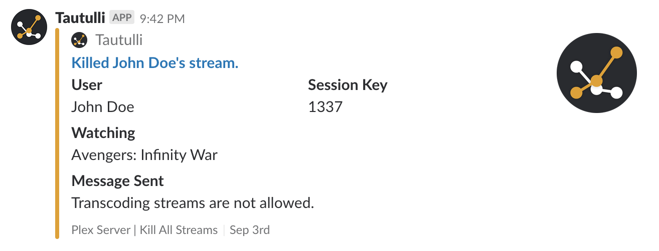 --jbop stream --username {username} --sessionId {session_id} --killMessage 'Transcoding streams are not allowed from over 4 Mbps (Yours: {stream_bitrate}).'