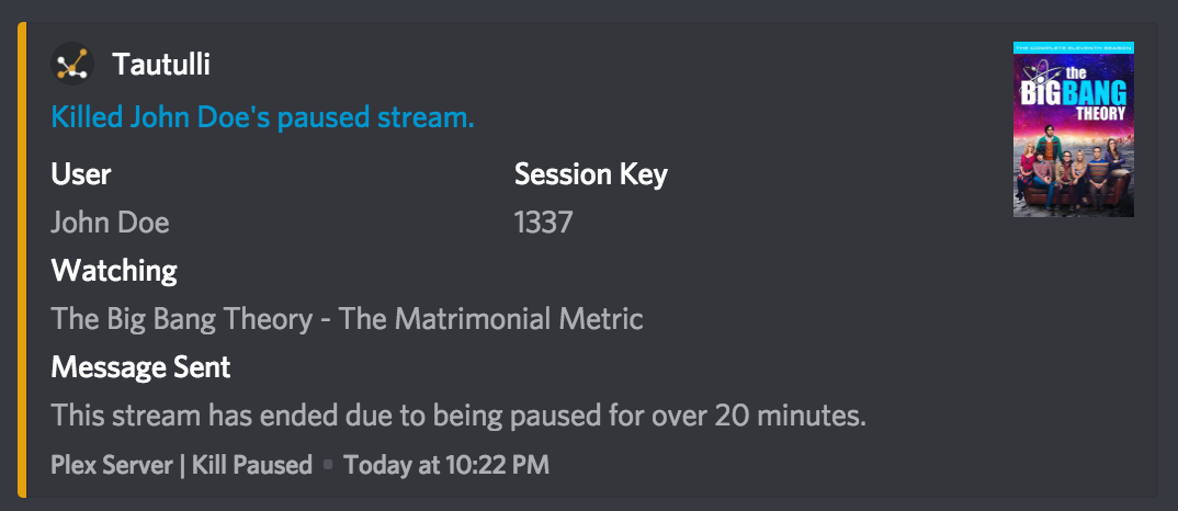 Note: The notifierID must be a Webhook in Tautulli