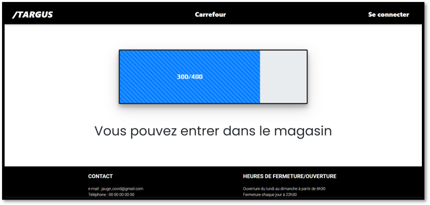 La jauge est remplie par le passage de personnes devant des capteurs, le but est d'énumérer toutes les personnes arrivant dans le magasin afin de réguler le flux de clients conformément aux règles sanitaires pour les magasins notamment celle des 4m²/client.