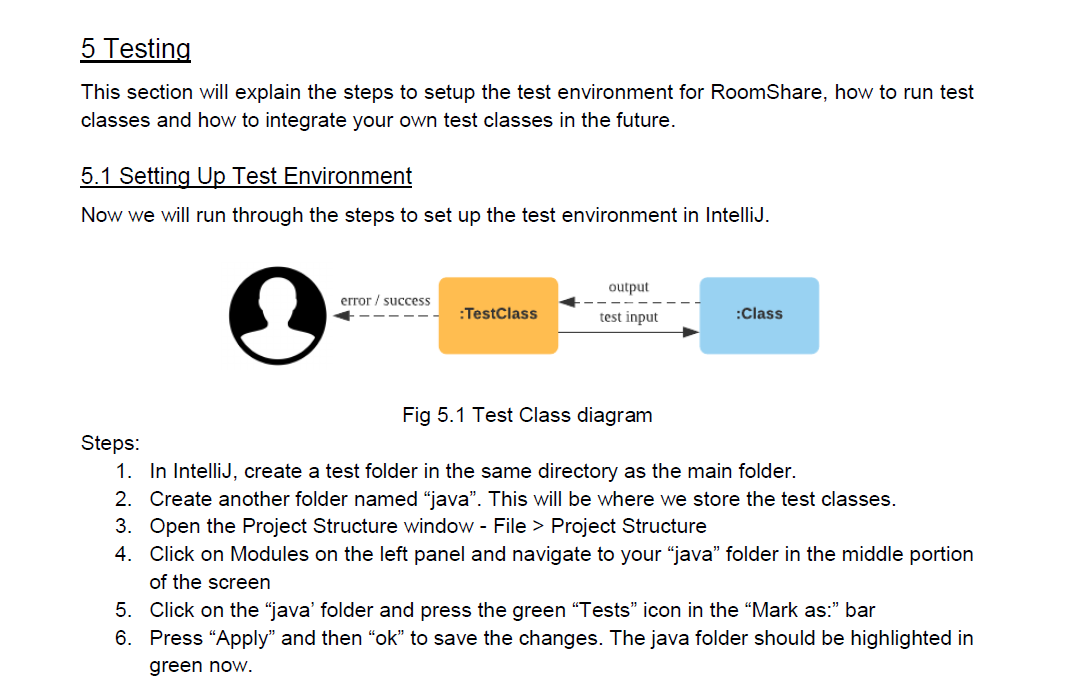 There is a section given on testing, however this is how to write test cases and not to help a manual tester to help test out your code. For example, giving example commands etc.