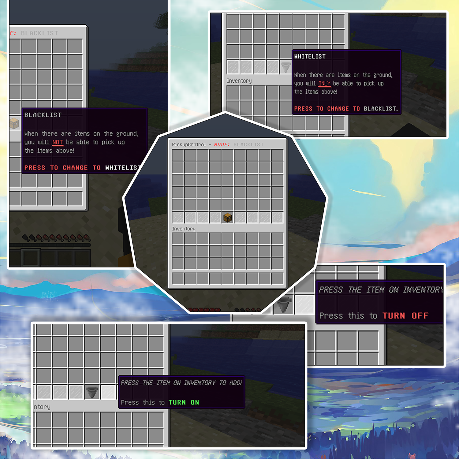 Sorting items while picking is the main function of this plugin. Easy to use with GUI support and only one command. Command / Permission: /pickupcontrol - pickupcontrol.use Required: Java 17 Recommend using Paper.