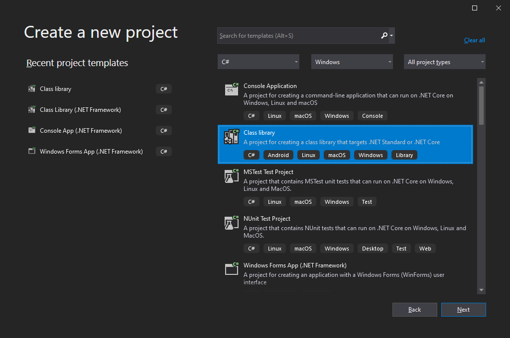 1. Create a "Class Library" project
