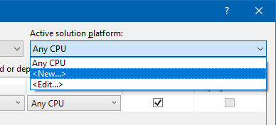 Then Active Solution Platform's drop down pick <New...>, it should pre-select x64 and then just click Ok.